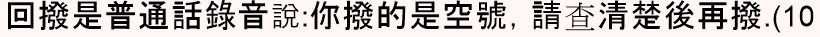 回撥是普通話錄音說:你撥的是空號,請查清楚後再撥.(100%係詐騙垃圾啦!) |