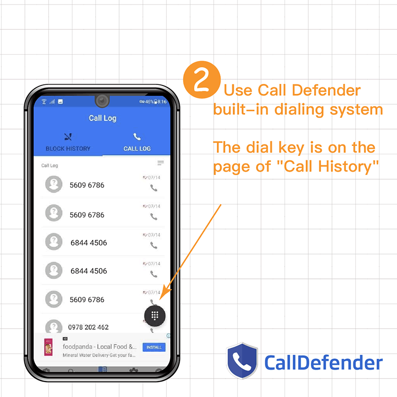2️⃣ Use Call Defender built-in dialing system the dial key is on the page of "Call History"